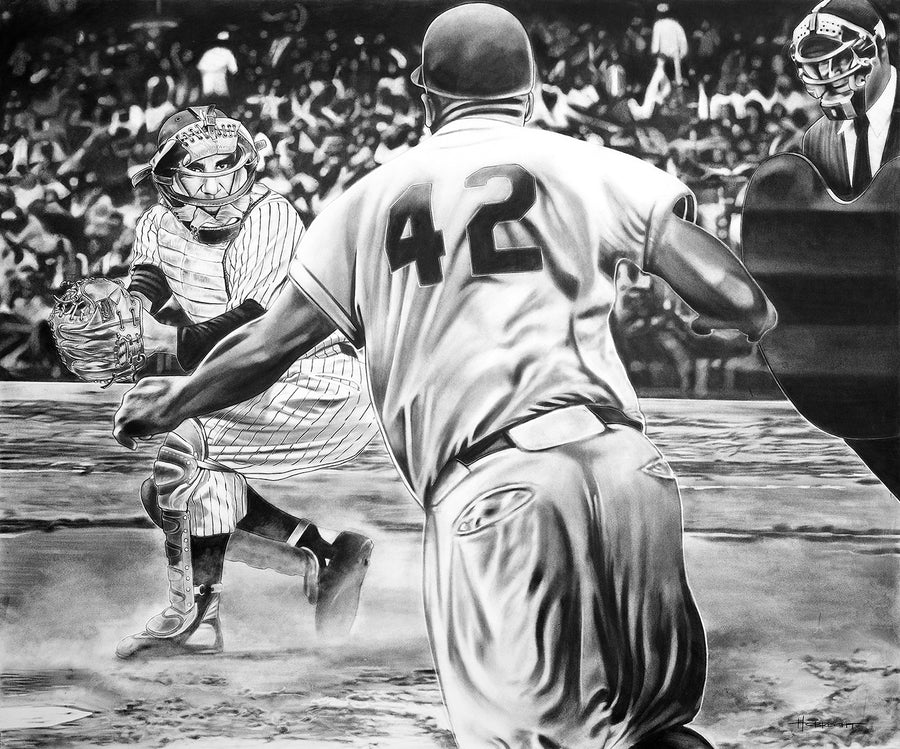 このオリジナル絵画は、世界的に有名なスポーツアーティスト、デイブ・ホブレヒトが木炭とパステルで描いたものです。